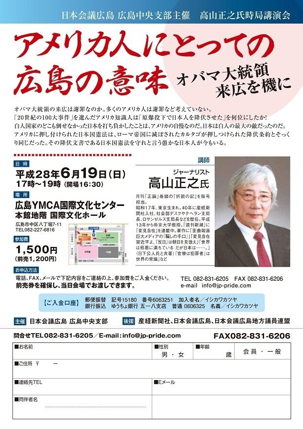 日本会議広島の広島中央支部が主催する講演会のチラシですね